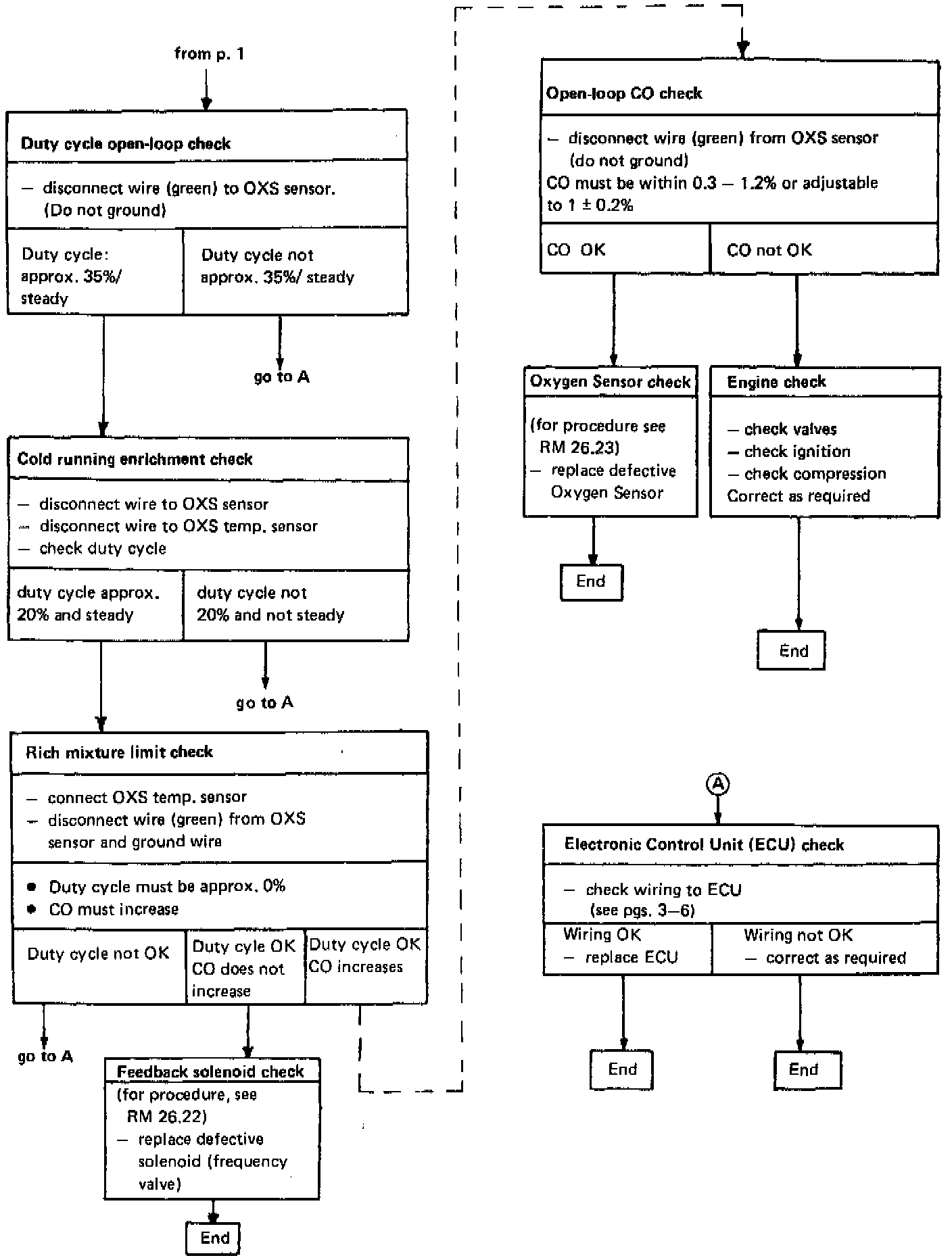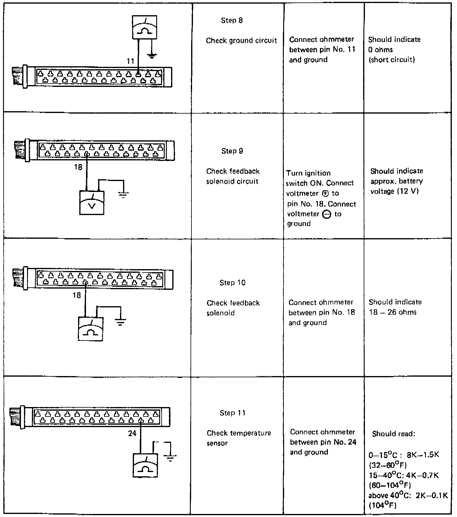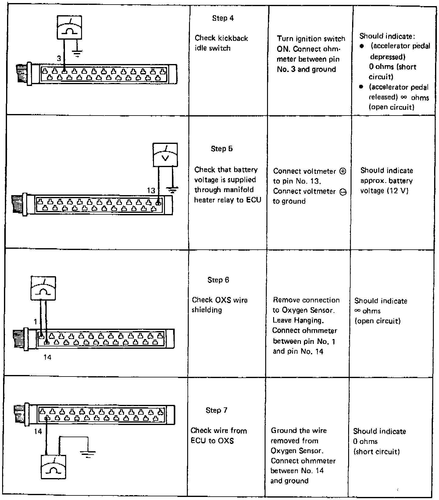 If hard starting, stalling, poor running, fluctuating idle speed, or poor fuel economy conditions occur, use the troubleshooting charts in the accompanying illustrations to check out electrical wiring and oxygen sensor circuits.