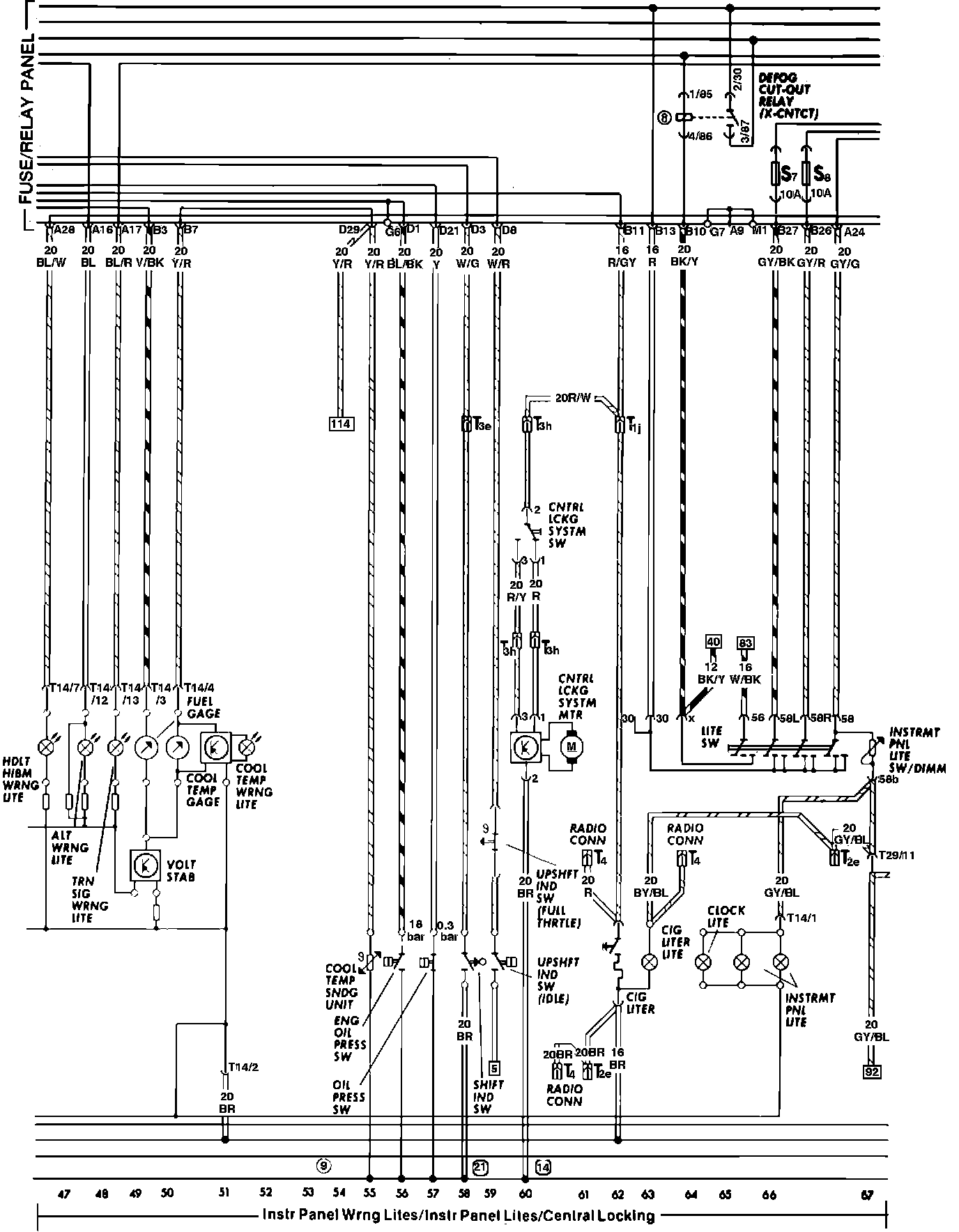 Central Locking, Cigar Lighter, Instrument Panel Lights, Radio, Alternator & Coolant Temperature Warning: