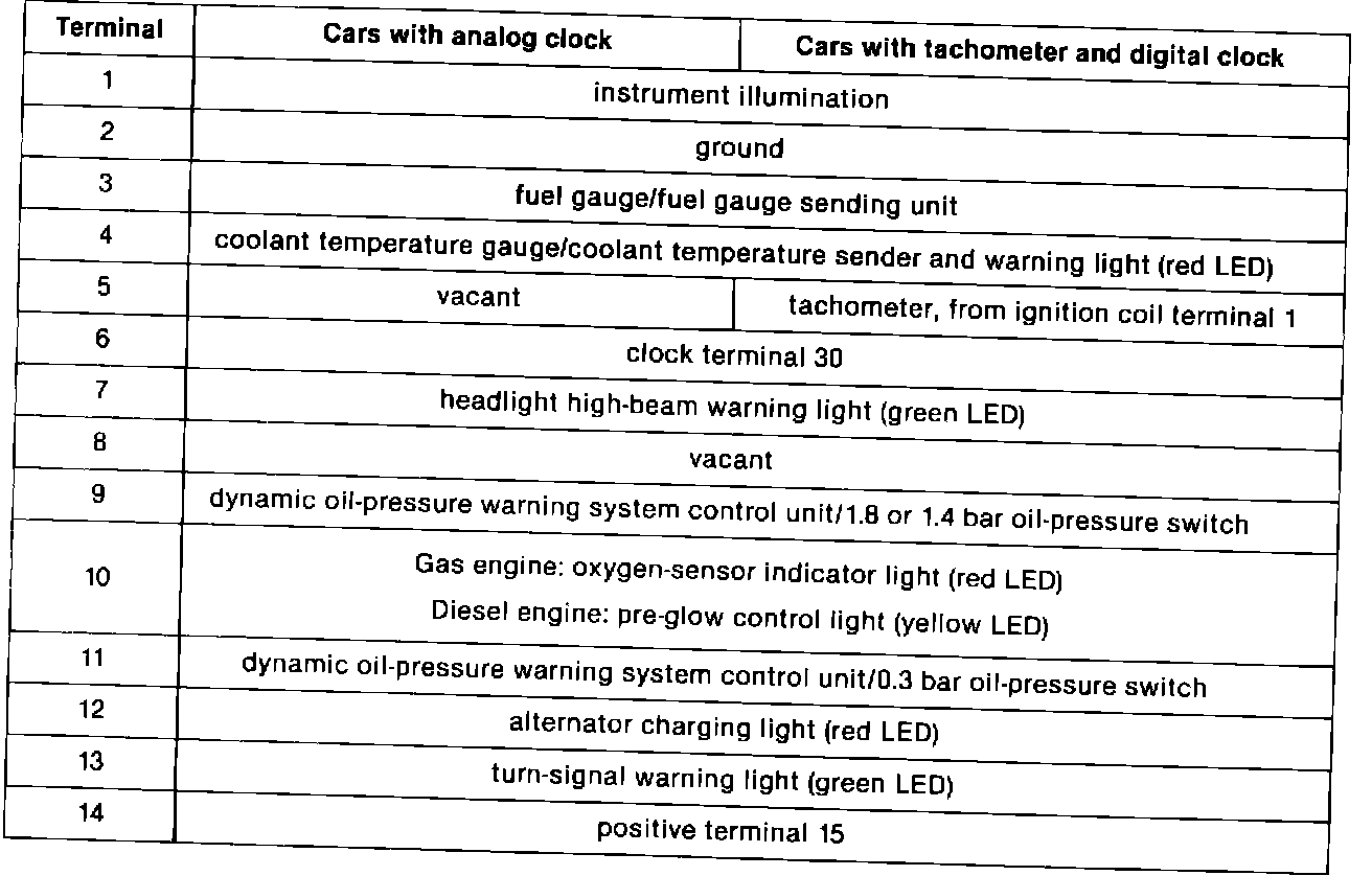 1 - not used 2 - not used 3 - not used 4 - gearshift indicator light (LED) 5 - not used 6 - speedometer
