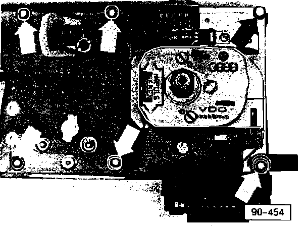 - remove screws and nuts (arrows) and swing housing to left while removing