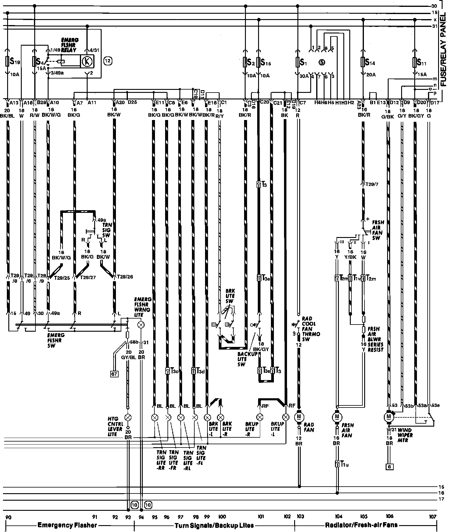 Fresh Air Fan, Back-Up, Brake, Emergency Flasher & Turn Signal Lights: