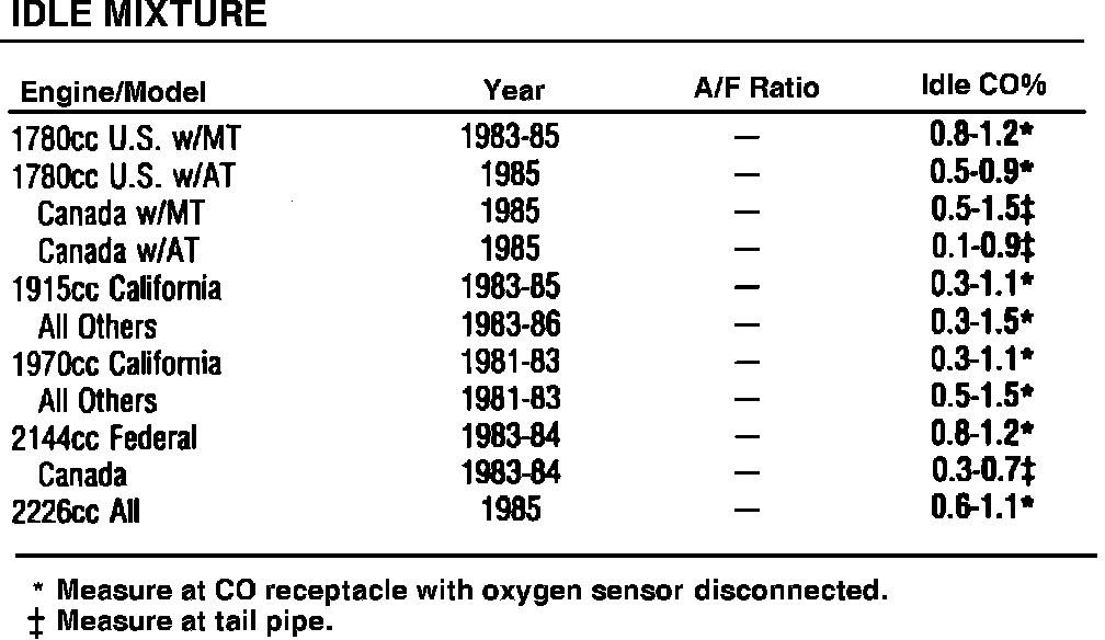 Idle Mixture Specifications: