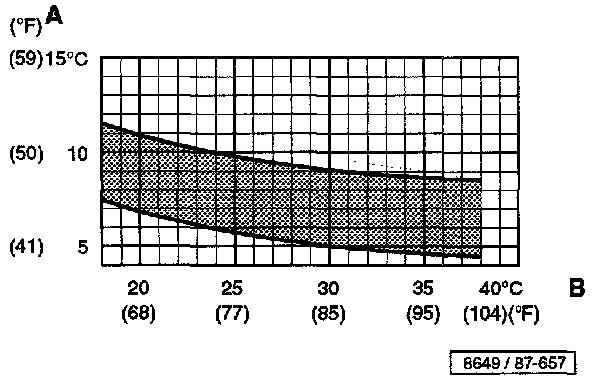 - Close the windows and doors. After the A/C compressor has cycled off for the first time, record the temperature. It should be within the range given in the graph.
