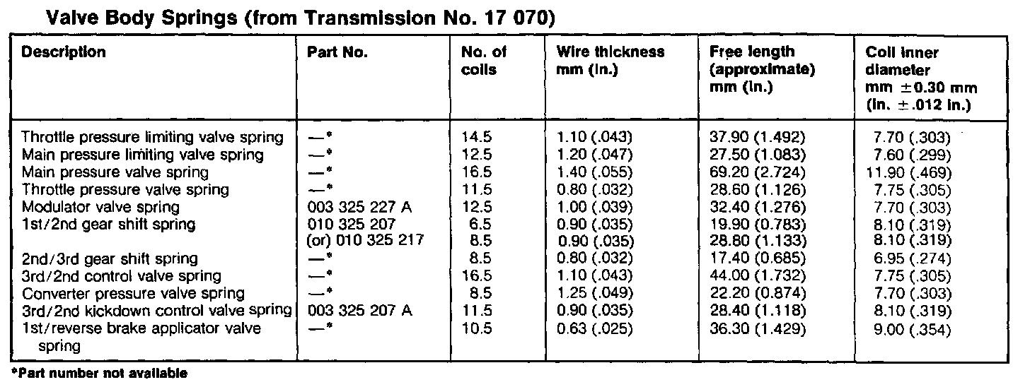 CAUTION - Although several springs used In the valve body are identical when new, used springs should not be interchanged.