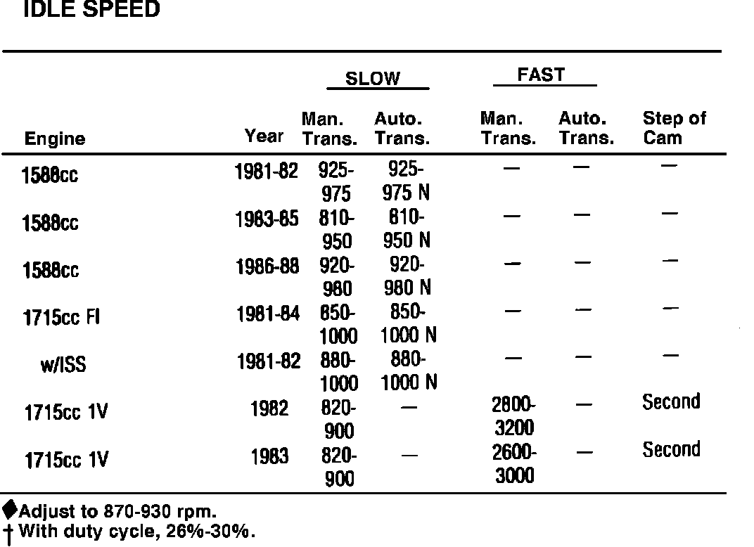 Idle Speed Specifications: