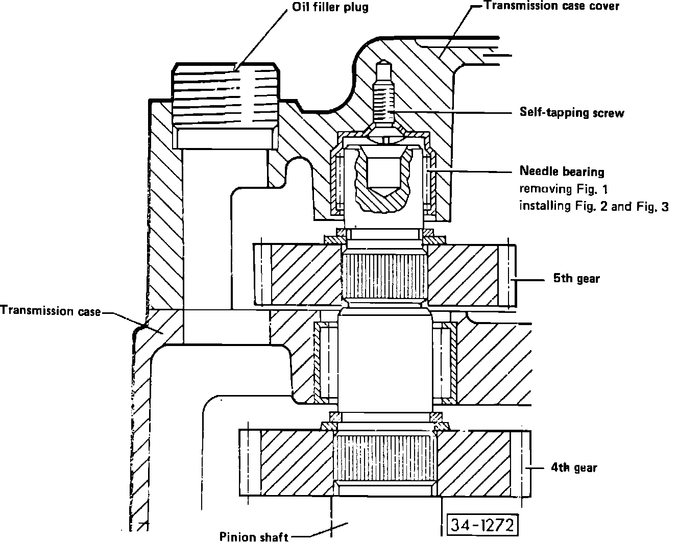 Additional needle bearing for pinion shaft is installed in transmission case cover for transmissions used with 1.8 liter engine