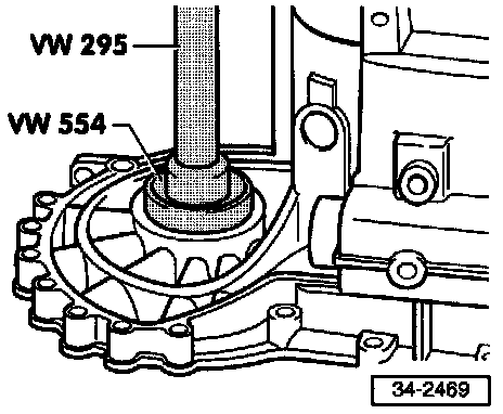 - Remove the transmission housing and drive out tapered roller bearing outer race