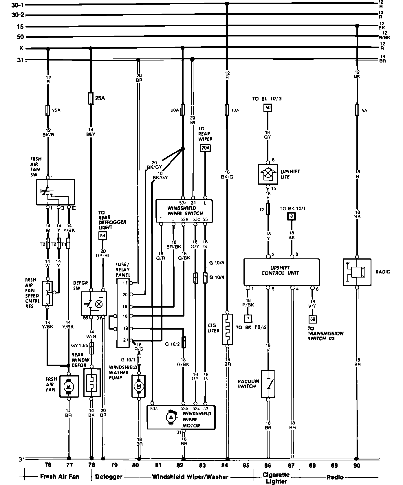 Cigar Lighter, Fresh Air Fan, Radio, Rear Defogger, Upshift Indicator & Windshield Wiper/Washer:
