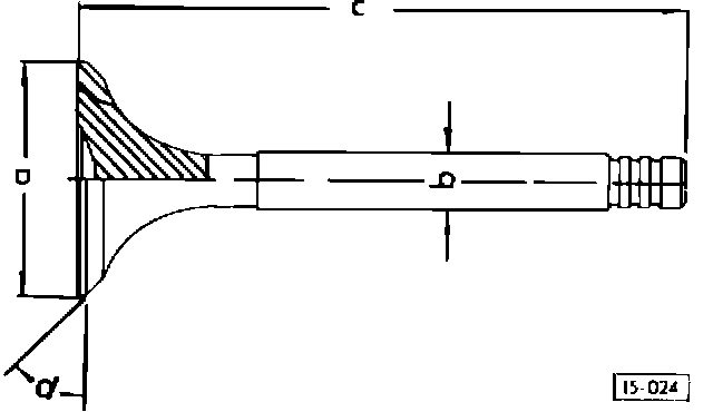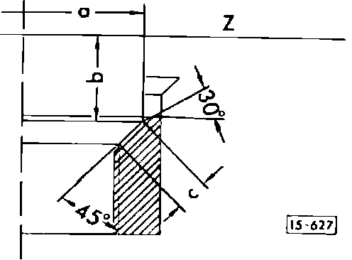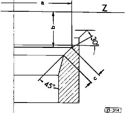 a = 32.4 mm (1.276 in.) b = 9.6 mm (0.378 in.) c = 2.4 mm (0.094 in.) Z = cylinder head lower edge 30~ = correction angle, upper 45~ = valve seat angle