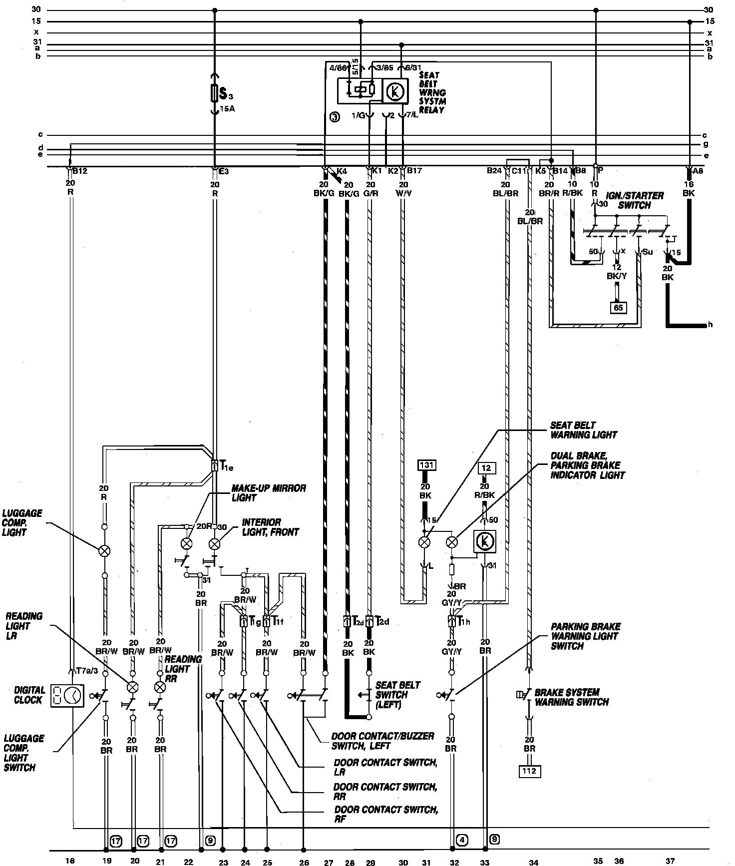 Brake, Seat Belt Warning, Clock, Door Contact, Ignition, Starting Switch, Interior, Luggage Compartment, Parking, Reading Lights: