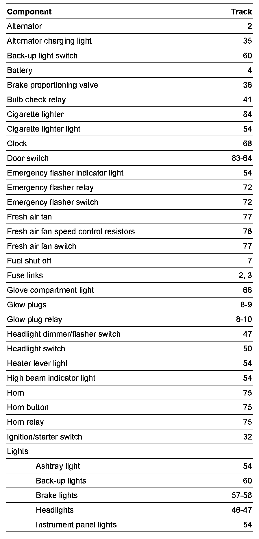 Index For Track Diagrams
