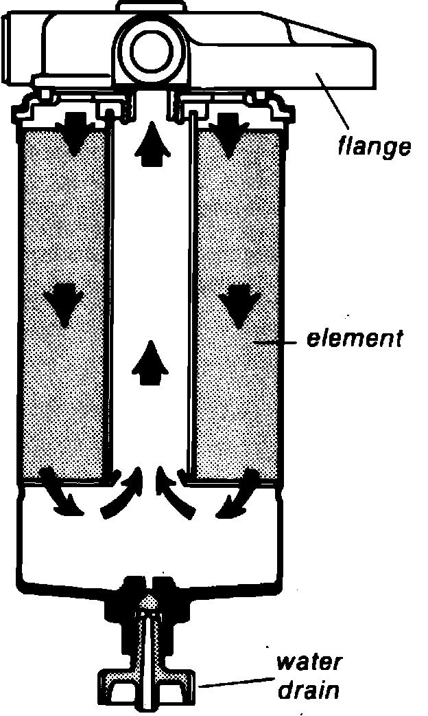 Some filter elements have a water drain in the bottom. If poor quality fuel is used, water separated by the filter can be drained to prevent freezing and blocking of the filter in cold weather.