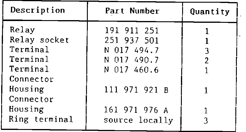 ^ strip wire and crimp terminal, Part No. N 017 490.7 and insert into cavity 6 of relay socket