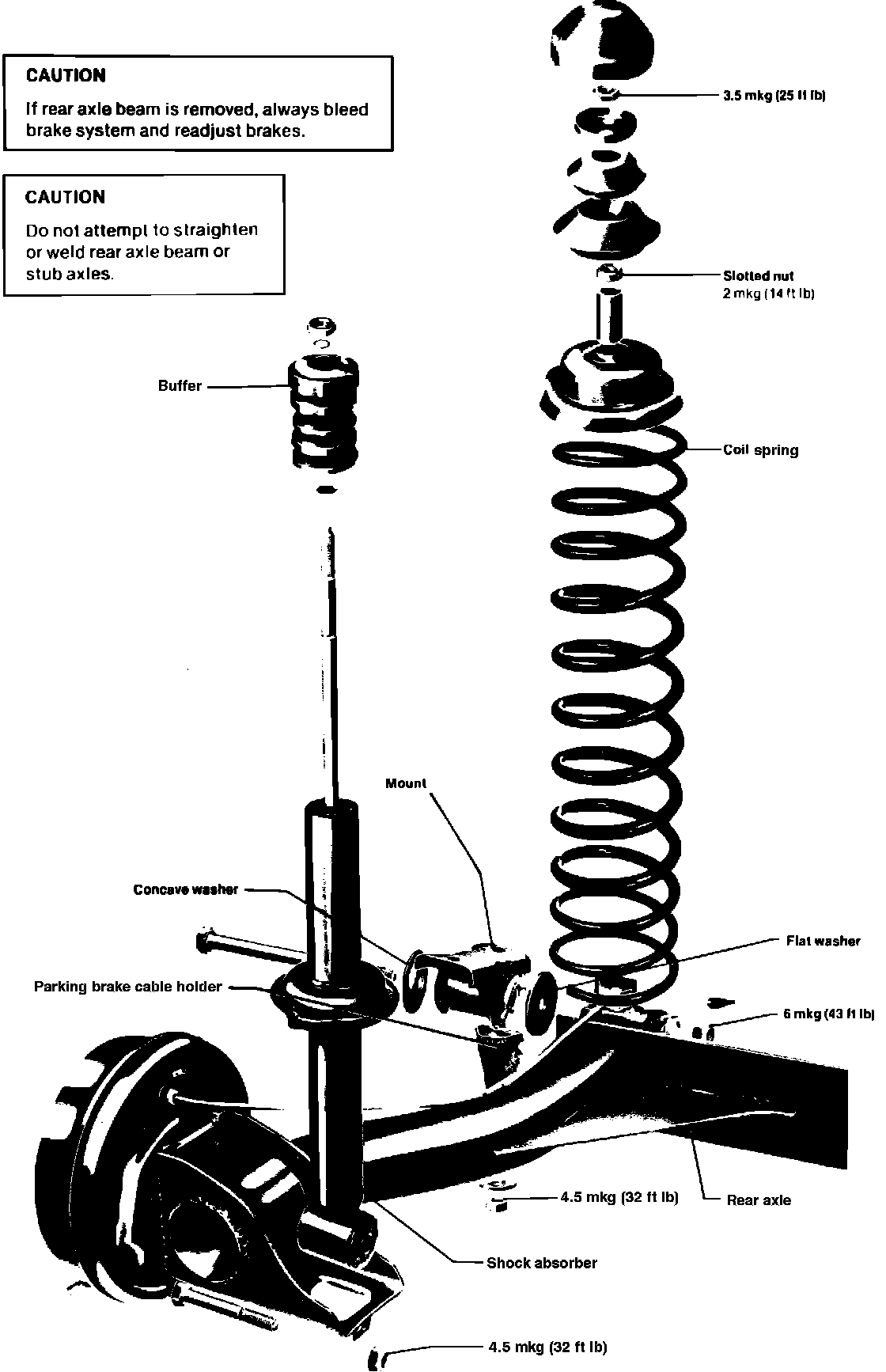 5. Remove rear axle mount to rear axle attaching bolts, then the rear axle.