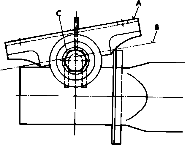6. Reverse procedure to install. When installing rear axle assembly, ensure that upper edge of rear mount (A), Fig. 2, parallel to line (B). If not, loosen nut (C), adjust mount as required, then torque nut to 43 ft. lbs.