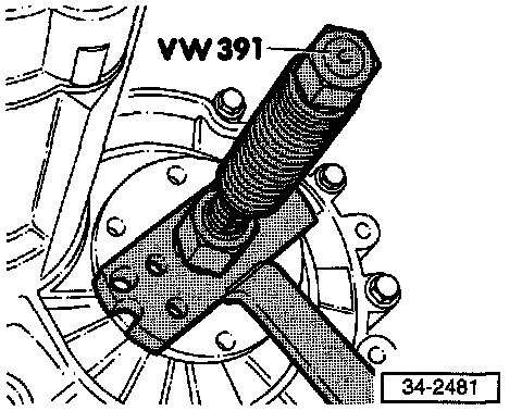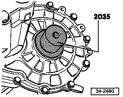 NOTE: If the spring behind the drive flange exerts too much force, special tool VW 201 should be installed to keep the flange in position while the circlip is installed.