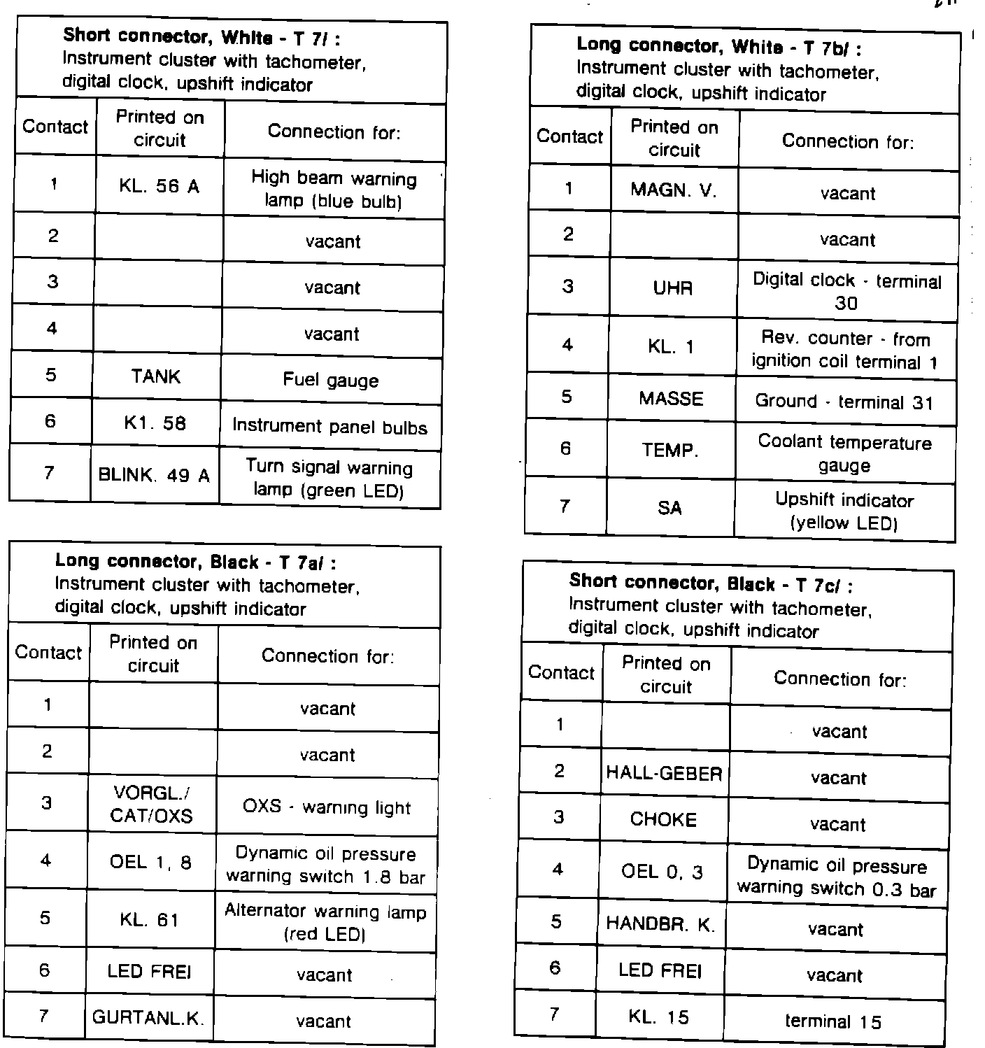 Instrument Cluster - Identification of Connector Terminals