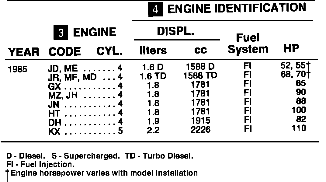 To identify an engine by the manufacturer's code, follow the four steps designated by the numbered blocks.