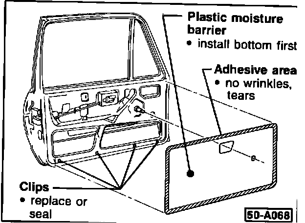 Take care NOT to damage moisture barrier when replacing inner door related items.