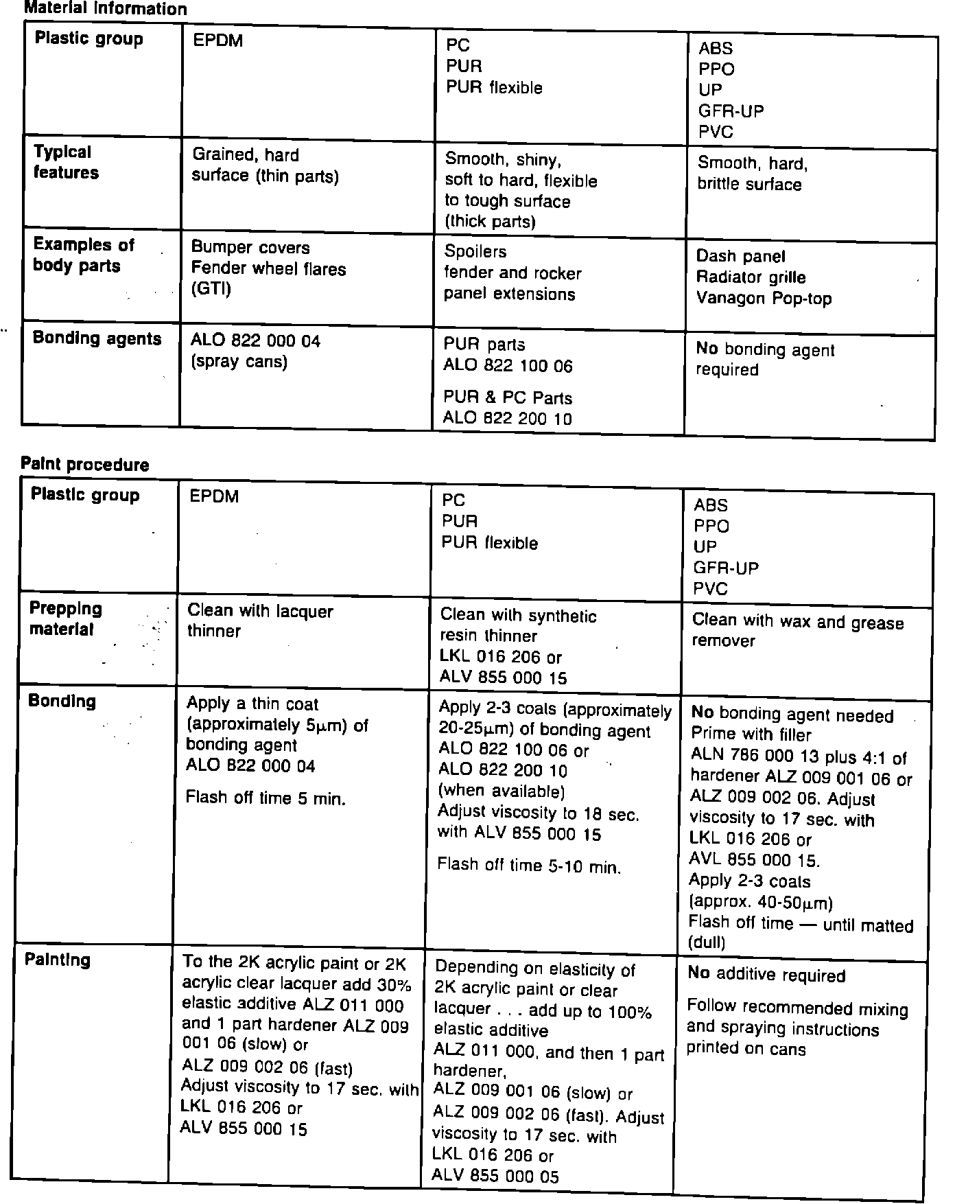 Identifying/painting and repairing plastic parts