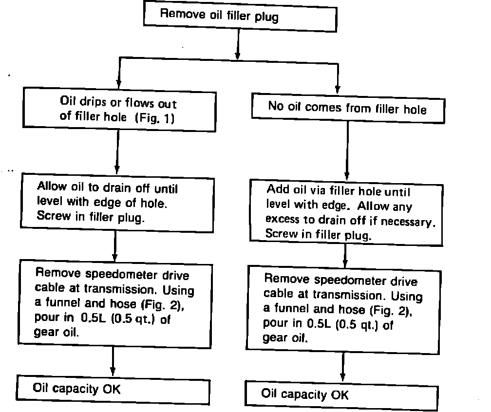 If the oil is allowed to drain until flush with the filler hole as in the past, the remaining oil quantity may not be adequate for efficient gear lubrication.