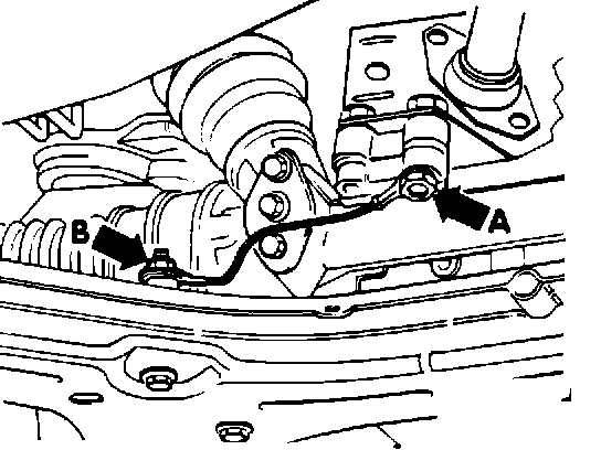 ^ remove bolt (arrow A) for shift rod bracket on steering gear