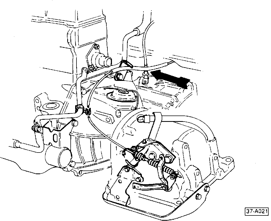 The shifter cable on all 1985-1988 vehicles with automatic transmission must be routed to the left of the speedometer cable as shown above (arrow).