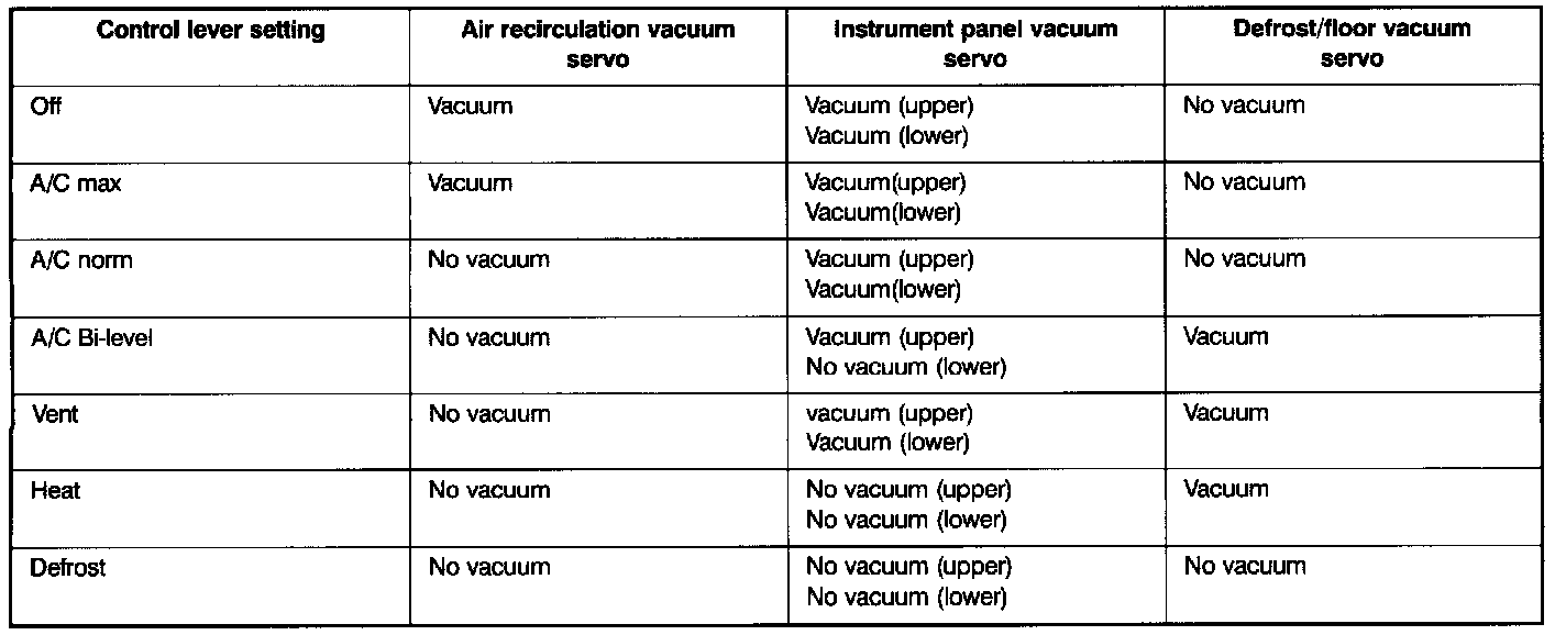 - The table (reference image) gives vacuum system response to control lever setting. The engine must be running for the tests.