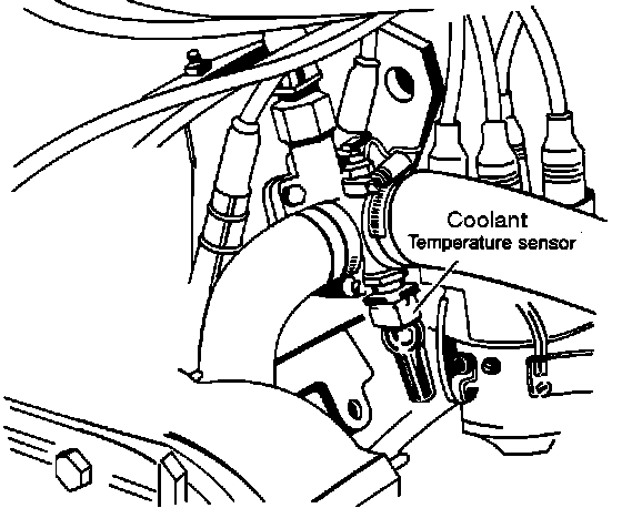 The coolant temperature sensor is located in the bottom of the cylinder head coolant outlet.