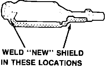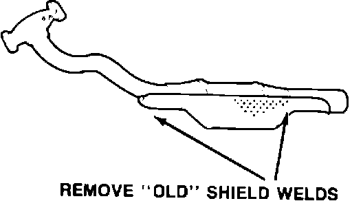 ^ remove old shield by grinding off old welds (see Fig. 1) (Do NOT use an air chisel or other impact type equipment)