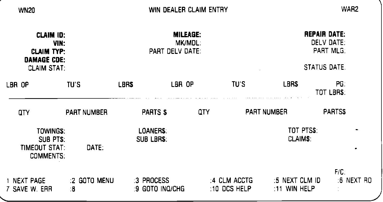 To process a campaign claim through WIN, the following data only needs to be entered into the system: