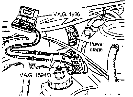 Fig. 3-11. Voltage and ground to power stage heing checked at terminals 1 and 3 of connector. Volkswagen special tools shown.