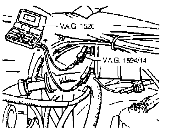 Fig. 3-13. Hell sending unit switching function being tested using LED test light Volkswagen special tools shown.