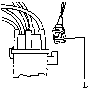 Fig. 3-16. Center terminal of Hall sender connector being briefly connected to ground to test Motronic control unit and power stage response.