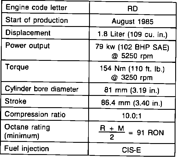 Output of the high performance engine used in the 1986 GLI vehicles has been increased from 77 kw (100BHP @ 5000) to 79 kw (102BHP @ 5250 rpm)..