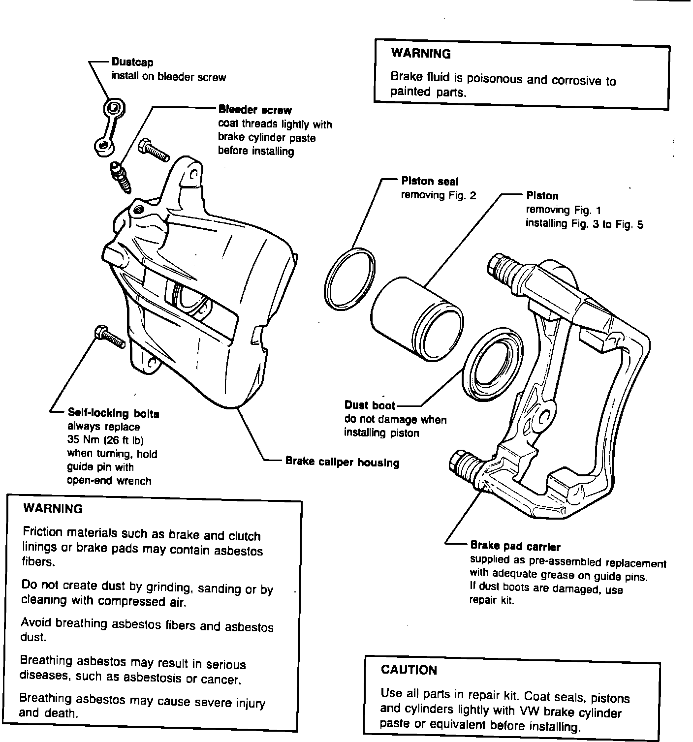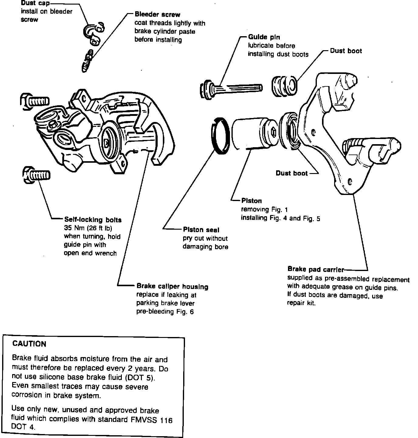 During repairs, the brake calipers MUST be bled before installing on vehicle. (see Fig. 6)