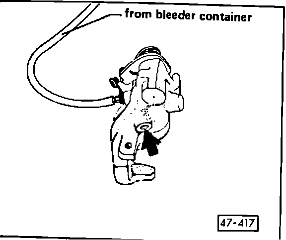 - open bleeder valve and fill with brake fluid from bleeder container until fluid flows from brake hose connection (arrow) without bubbles