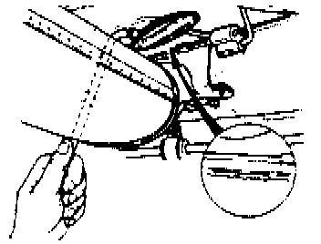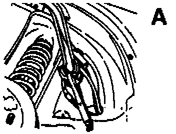 - Take pressure test tool out of box; use chain hangers from tool and carefully hook into opening of trunk lid hinges. (Cabriolet) or into inside trunk reinforcement panel (Scirocco).