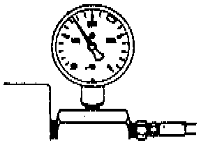 - To ensure proper calibration of the pressure test tool gauge, clamp the hose between test tool gauge and fuel tank filler neck (Open both valves so knobs are in line with tool assembly.)