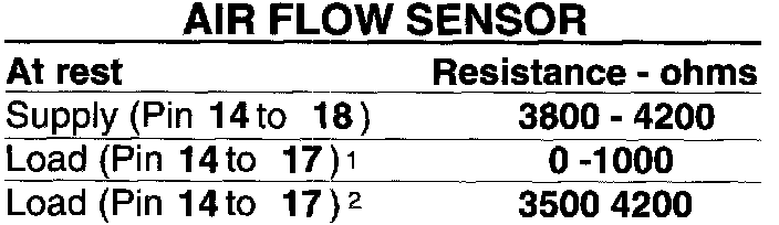 1 Flap on air flow sensor closed or air flow sensor plate at rest position. Resistance increases as flap or plate opens.