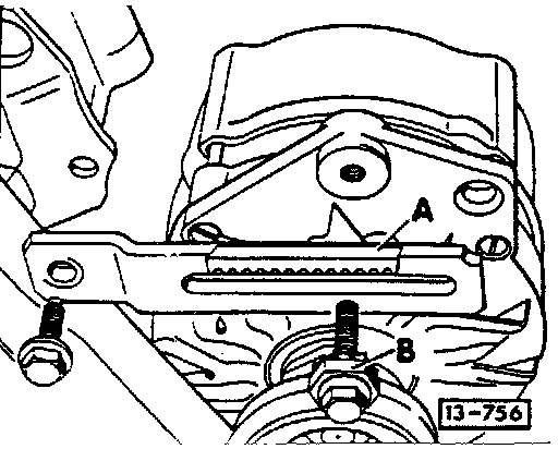 On engines equipped WITH the toothed rack on the adjustment bracket, the V-belt tensioning should be performed using a torque wrench: