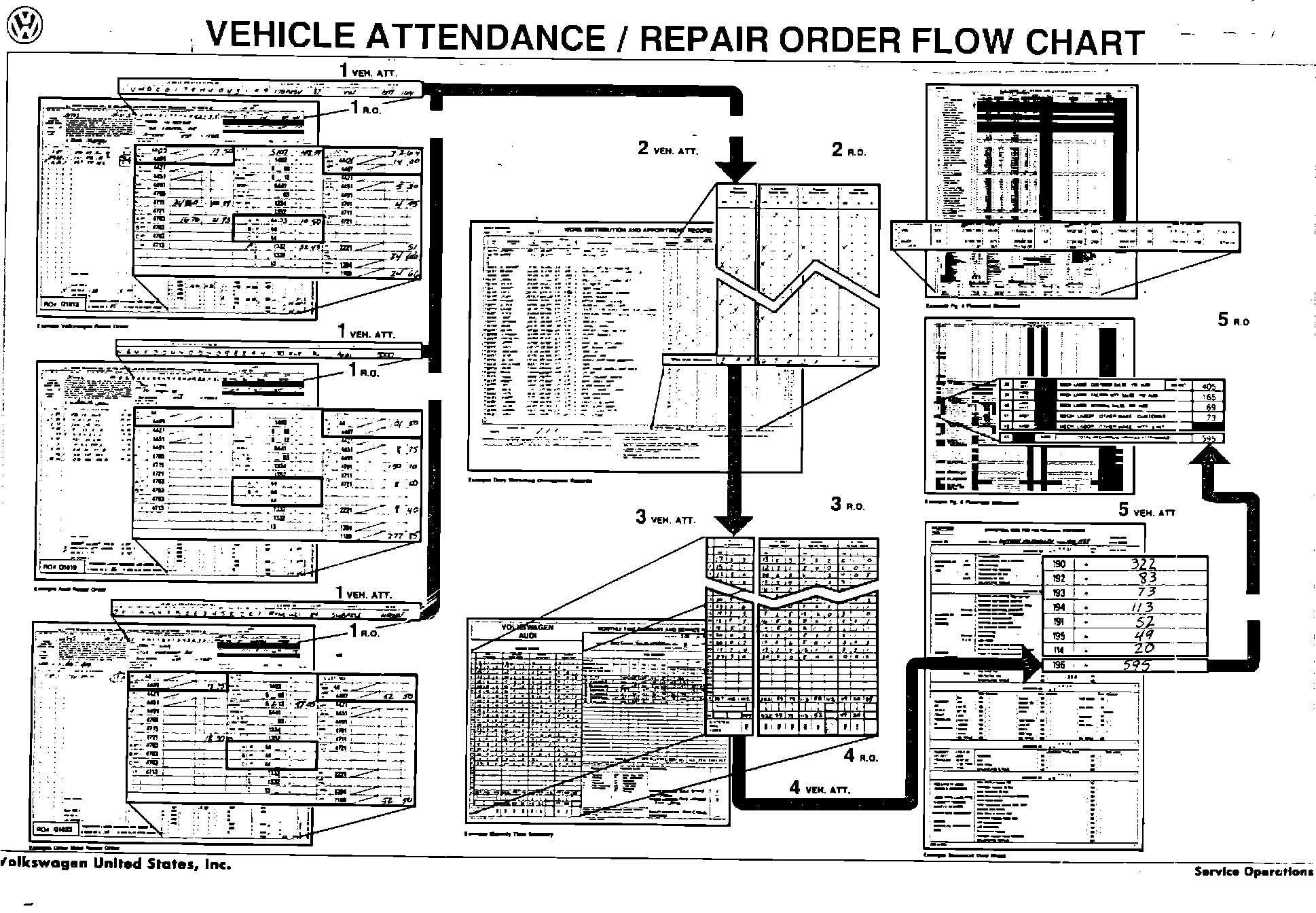 While vehicle attendance counting procedures remain unchanged, warranty and internal counting procedures have been revised to capture the new labor sales account information. To enhance the accuracy of reporting these changes, workshop control forms have been updated. In addition, the attached flow chart has been developed to follow a repair order through the counting procedure from the time of write-up through financial statement input.