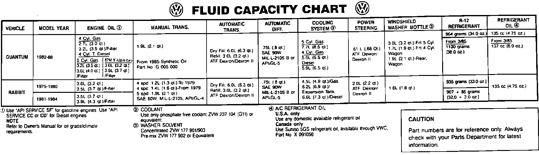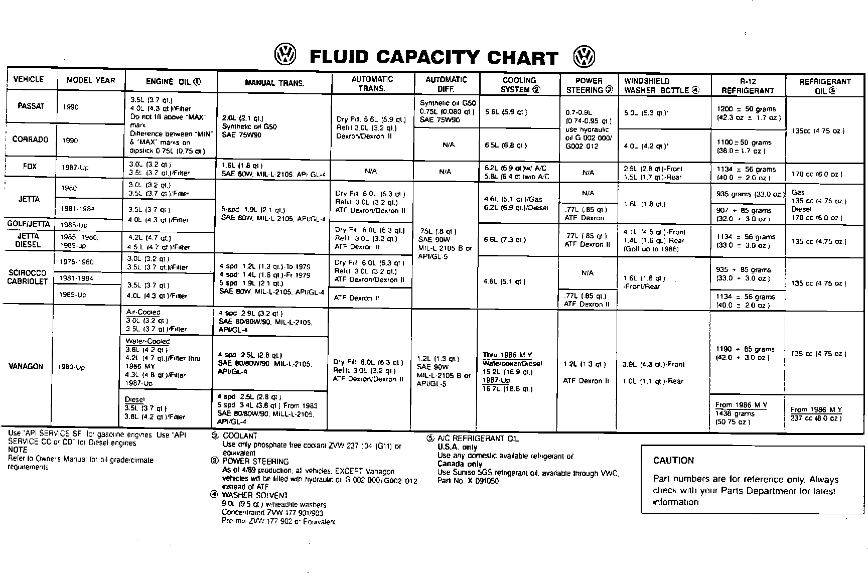 90vw06Subject: Lubricant Capacities/Lubricant type (supercedes Technical Information 88-03, Group 00, of Oct 10, 1988)
