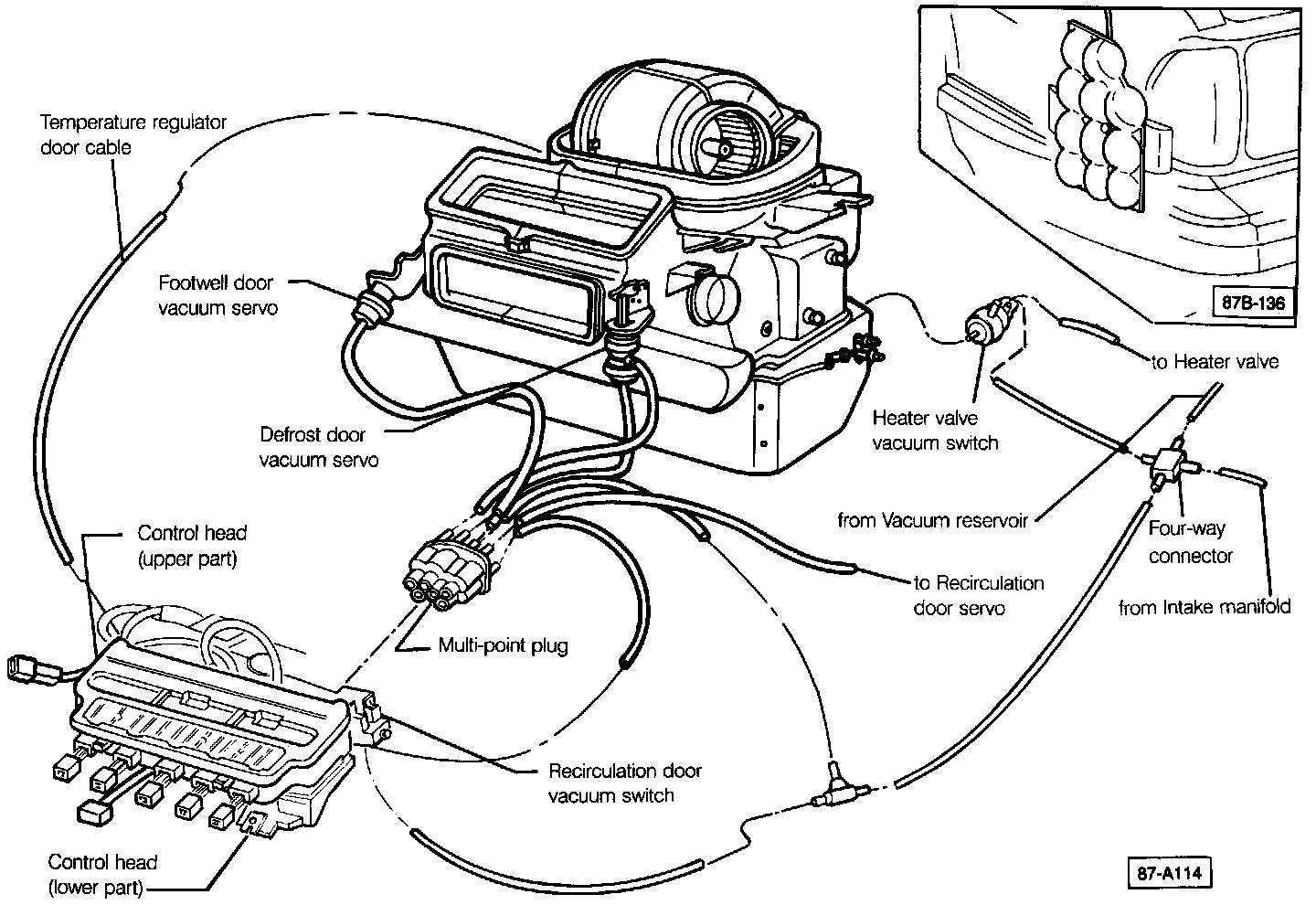 - Check vacuum supply by removing the vacuum supply hose from the four-way connector with the engine running. No vacuum at the hose indicates a fault in the hose to the intake manifold. Vacuum at the hose when it is removed indicates a fault at the control head.