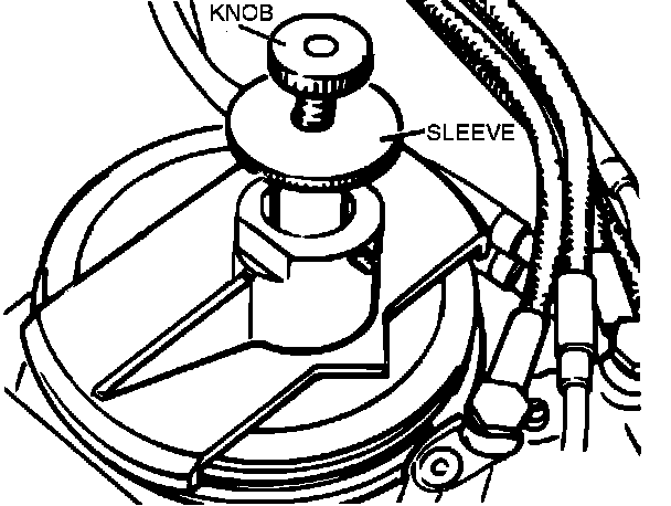 3. Install VOLKSWAGEN special tool #1348/1 (or equivalent). Carefully push the center sleeve all the way down, then turn the adjusting knob clockwise until the tool's magnetic tip just contacts the sensor plate center bolt. Turn the adjusting screw counterclockwise to raise the sensor plate to a point just before any of the injectors start spraying.