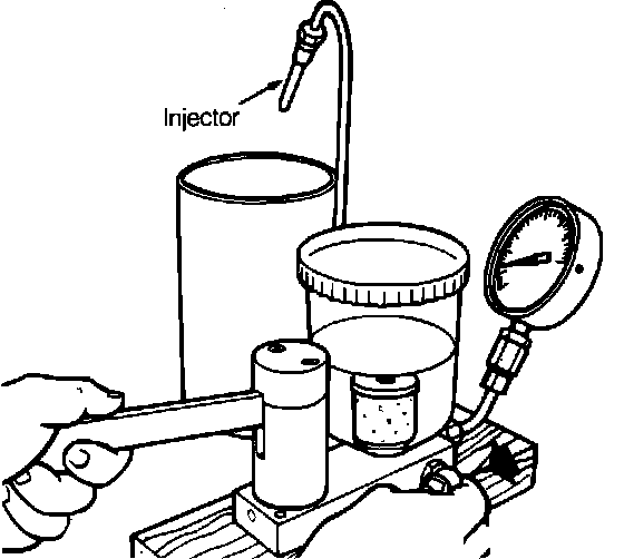 WARNING: Use only Shell mineral spirit 135 or equivalent when testing or cleaning injectors using a pressure tester. Shell mineral spirit 135 is flammable. Do not smoke or work near heaters or other fire hazards. Keep a fire extinguisher handy.