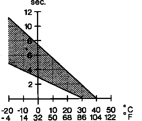4. Actuate the starter while observing the test light. The test light should light for several seconds, then go out. The amount of time that the light should stay on depends on coolant temperature, see graph.