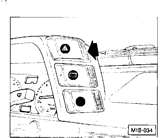 ^ press retaining clip (arrow) and carefully pull switch from panel (switch removed in this illustration)