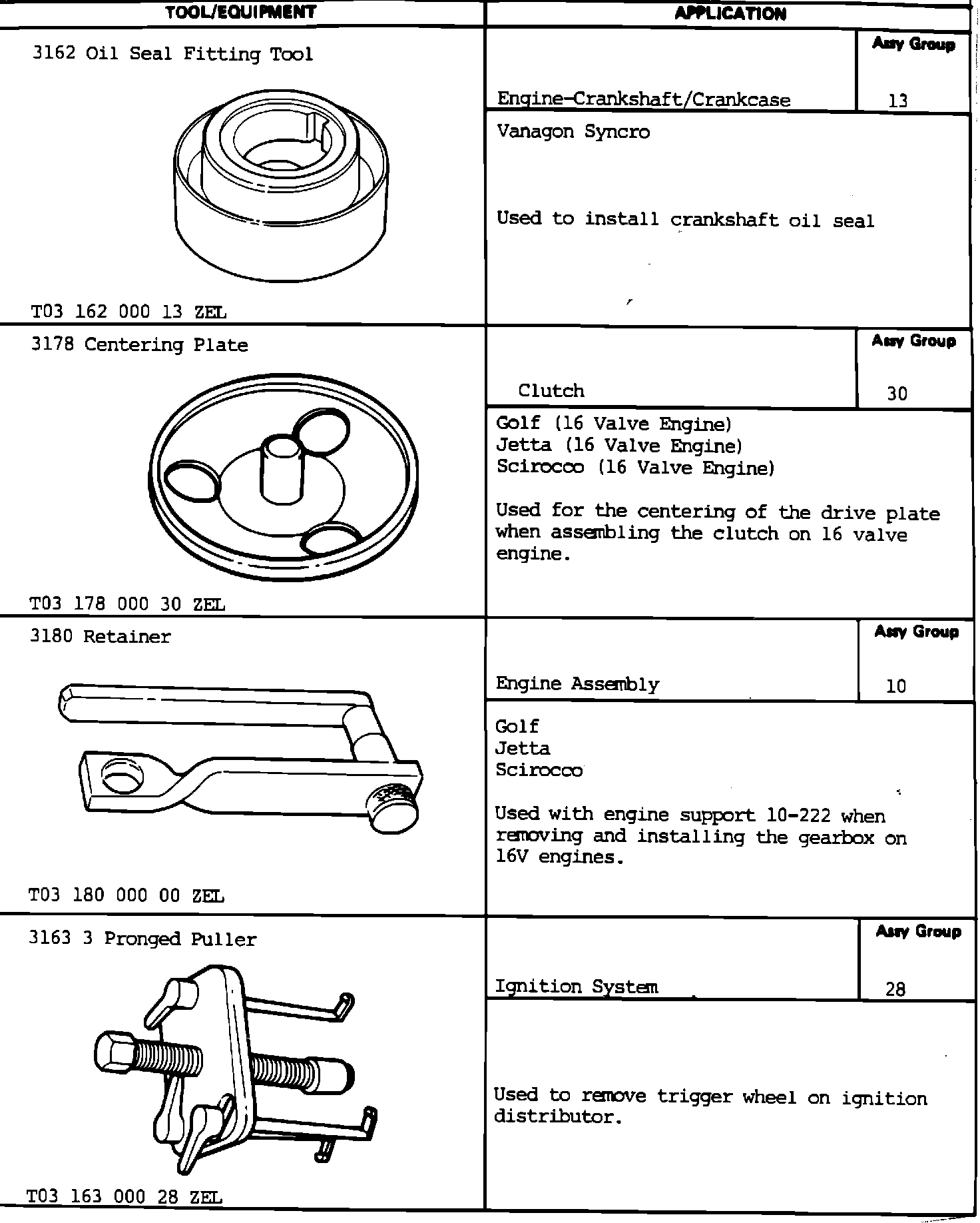 1988 Volkswagen Special Introducing New Special Tools Required To