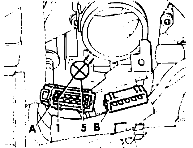 b. Bridge terminals 1 and 2 of harness connector using jumpers from VW 1594 adapter kit, Fig. 14.
